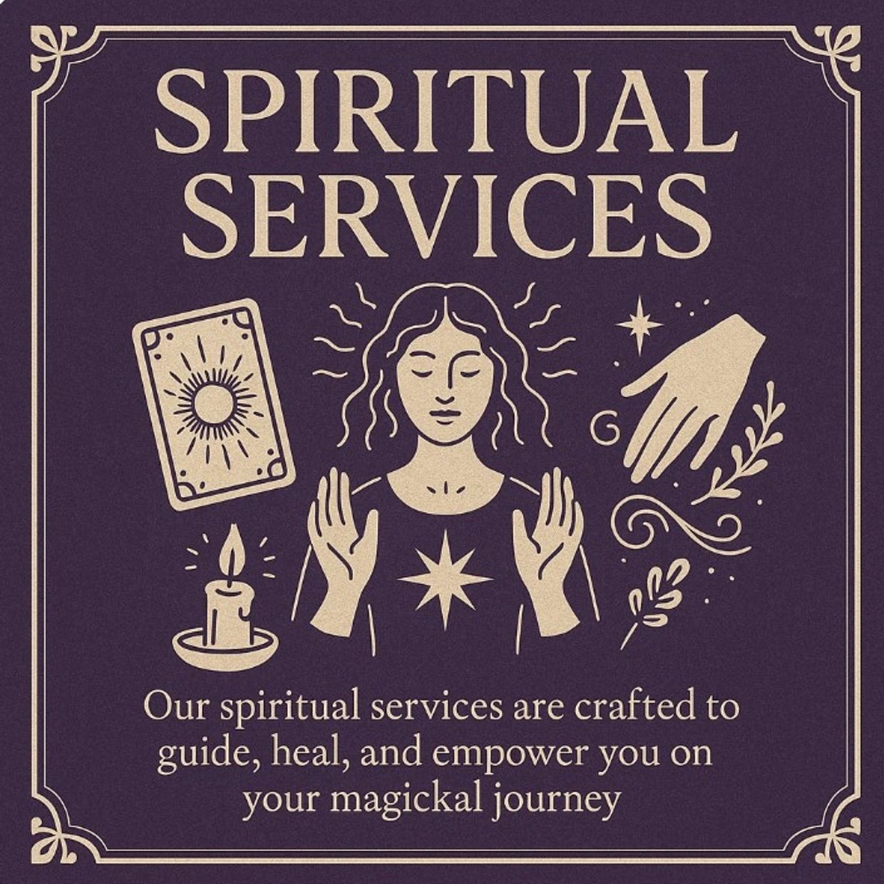 Our spiritual services are crafted to guide, heal, and empower you on your magickal journey. Offering tarot readings, Reiki healing, and personalized spell writing, we provide the support and insight you need to navigate life’s challenges and unlock your full potential. Whether you're seeking clarity, energy healing, or personalized rituals, our services are designed with intention and care to help you manifest your deepest desires and deepen your understanding of spiritual practices. Join us to connect with your inner magick and create a life of purpose and transformation.